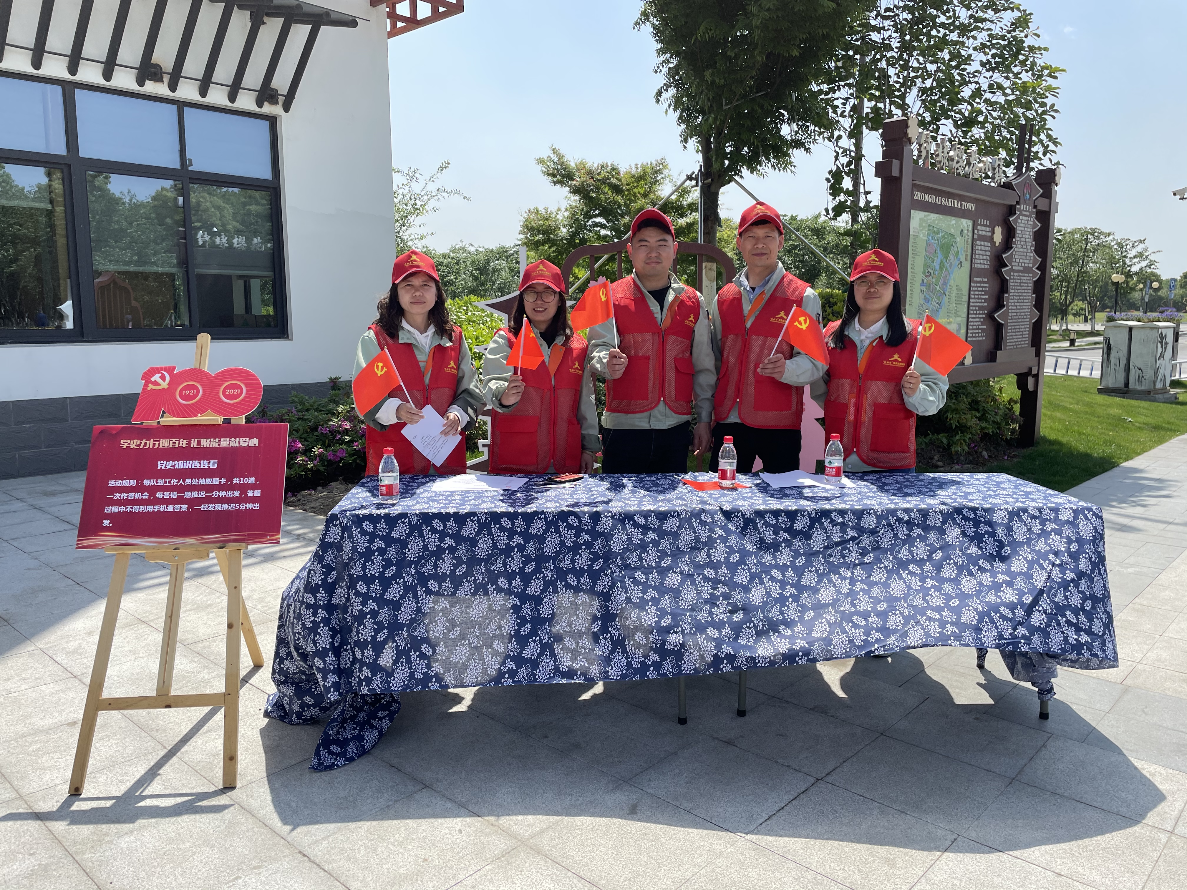 為進一步發揮兩新組織黨員服務基層、服務社會、服務群眾的作用,讓“黨旗在基層一線高高飄揚”。4月29日下午,平湖經開舉行兩新組織黨員“學史力行迎百年、 匯聚能量獻愛心”志愿行活動以“徒步+闖關積能量”的方式開展,從櫻花里·溫暖嘉出發,途中設置了黨史知識連連看、紅色歌曲齊聲唱、入黨誓詞記心間、使命接力迎百年、我和黨旗合個影等5個闖關環節,12個兩新黨組織特色志愿服務項目組分AB兩個路線分別進行闖關。