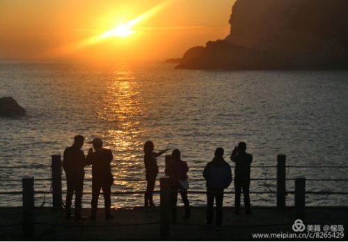 11月24日凌晨,大家揉著尚未瞳醒的雙眼,相約觀日出。太陽初升海平面時(shí),火紅火紅的,照在波光磷磷的還海上,一遍金色,真是美極了。