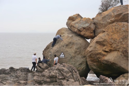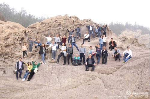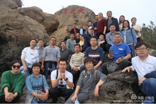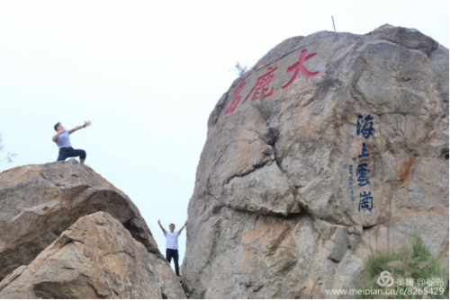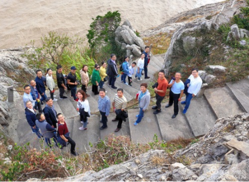 董事長李德進(jìn)勇攀陡崖不畏難。懸崖頂上彎弓射大雕,彰顯男子漢的神力。在劉海粟先生題字“大鹿島”前留個(gè)集體照,個(gè)個(gè)都是攀登險(xiǎn)境的先鋒。