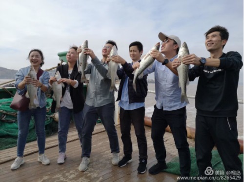 漁網(wǎng)出海水,漁民師傅將網(wǎng)中的魚兒清理中,有:金黃色的魚兒、螃蟹、蝦……剛撈到的魚蝦在漁民師傅的烹飪下,不一會兒就變成了香、甜、鮮的魚蝦宴了。豐收的喜悅,這一網(wǎng)將海上捕魚掀起了高潮,手捧大魚,來一個(gè)集團(tuán)照,笑容多么燦爛。