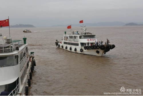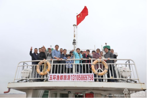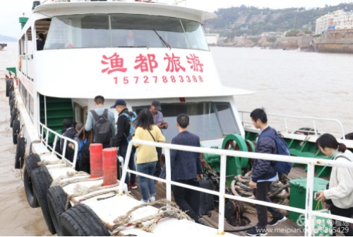 時(shí)光冉冉,早餐后,我們懷著依依不舍的心情,背起行囊要乘船返航玉環(huán)坎門了。接送我們返航的漁船:“漁都”號,向我們駛來。