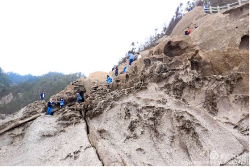大家跟隨李董沿著石頭臺階趕著下一個(gè)景點(diǎn),猛聽項(xiàng)光躍主席站在崖頂?shù)暮奥暎蠹乙恢禄厥讜r(shí),被項(xiàng)主席抓拍的瞬間,一個(gè)個(gè)笑的多么開心。