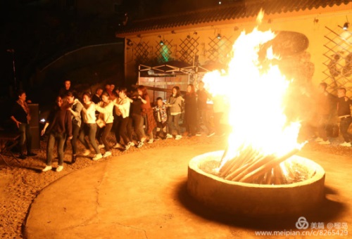 篝火在熊熊燃燒,發(fā)出噼里啪啦的聲音,晚會高潮不斷。