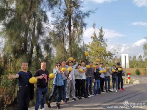 年輕人在一起就是好,永遠(yuǎn)不服輸,瞧,大家在比試誰摘的文旦大且重。最后來一張手捧文旦大PK照。