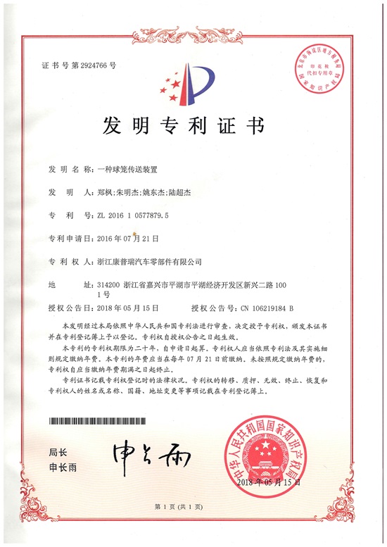 • 一種球籠傳送裝置